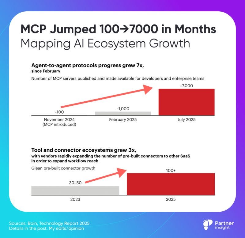 In months, MCP/agent servers jumped from 100 to 7,000. Plumbing getting laid for AI agents to scale.