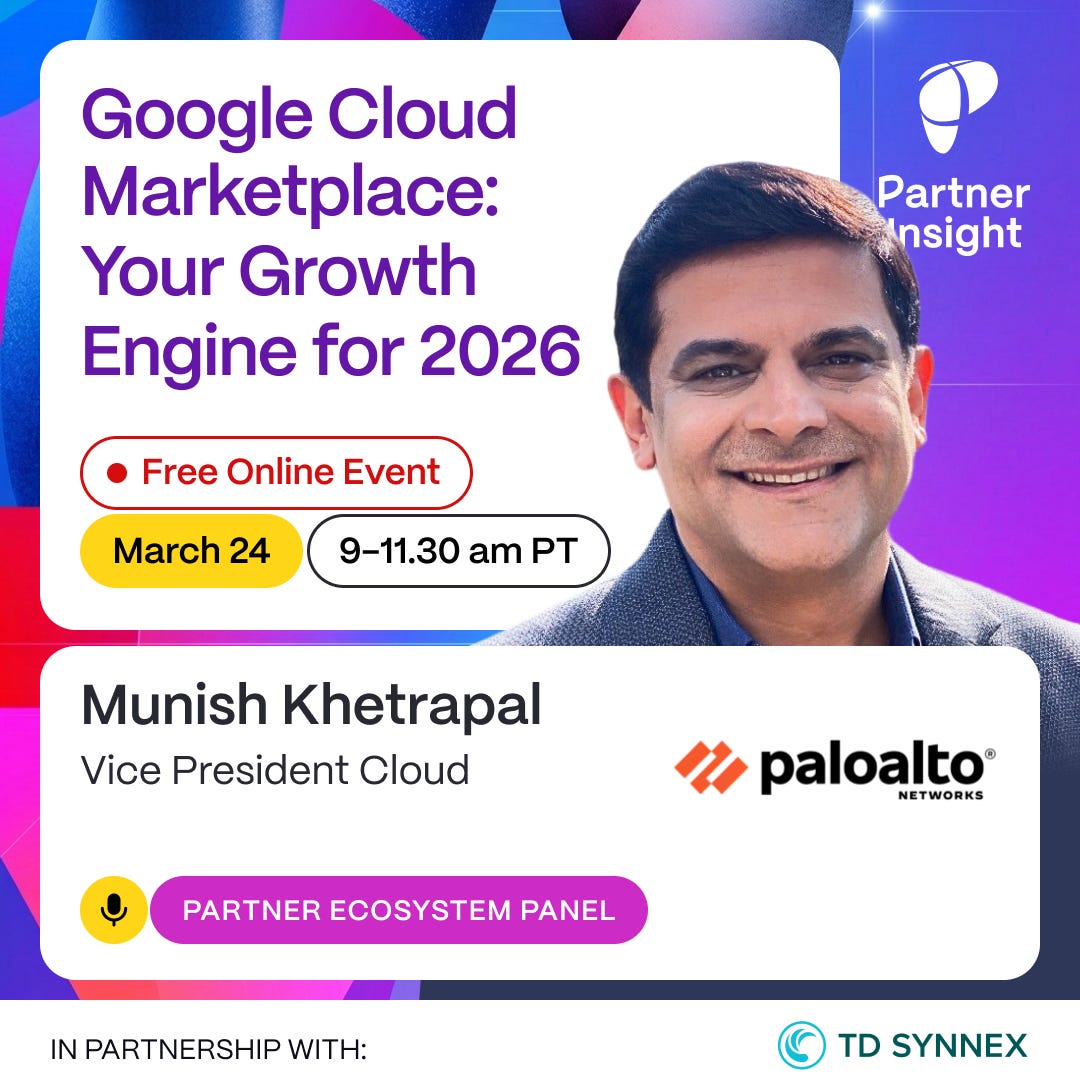 Partner Ecosystem Panel: Google Cloud + leaders from Palo Alto Networks ($2B+ in GCP Marketplace sales), TD SYNNEX, and Optiv