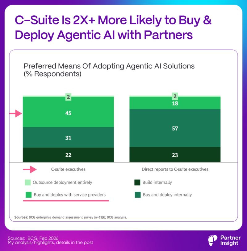 75% of enterprises want service providers to build their key Agentic AI use cases. Not internal teams. Partners. C-suite is also 2X+ more likely than mid-management to buy from partners.