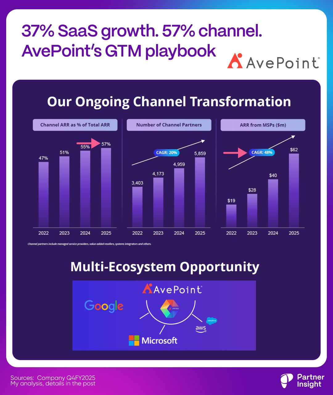 AvePoint grew SaaS revenue 37% YoY in a market where many SaaS vendors are slowing. Their fastest-growing motion? Channel now drives 57% of ARR
